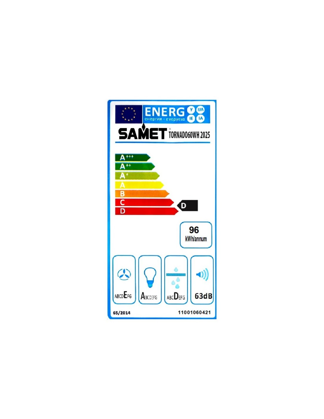 Gruppo cappa sottopensile 3 livelli Tornado6025WH bianco classe D