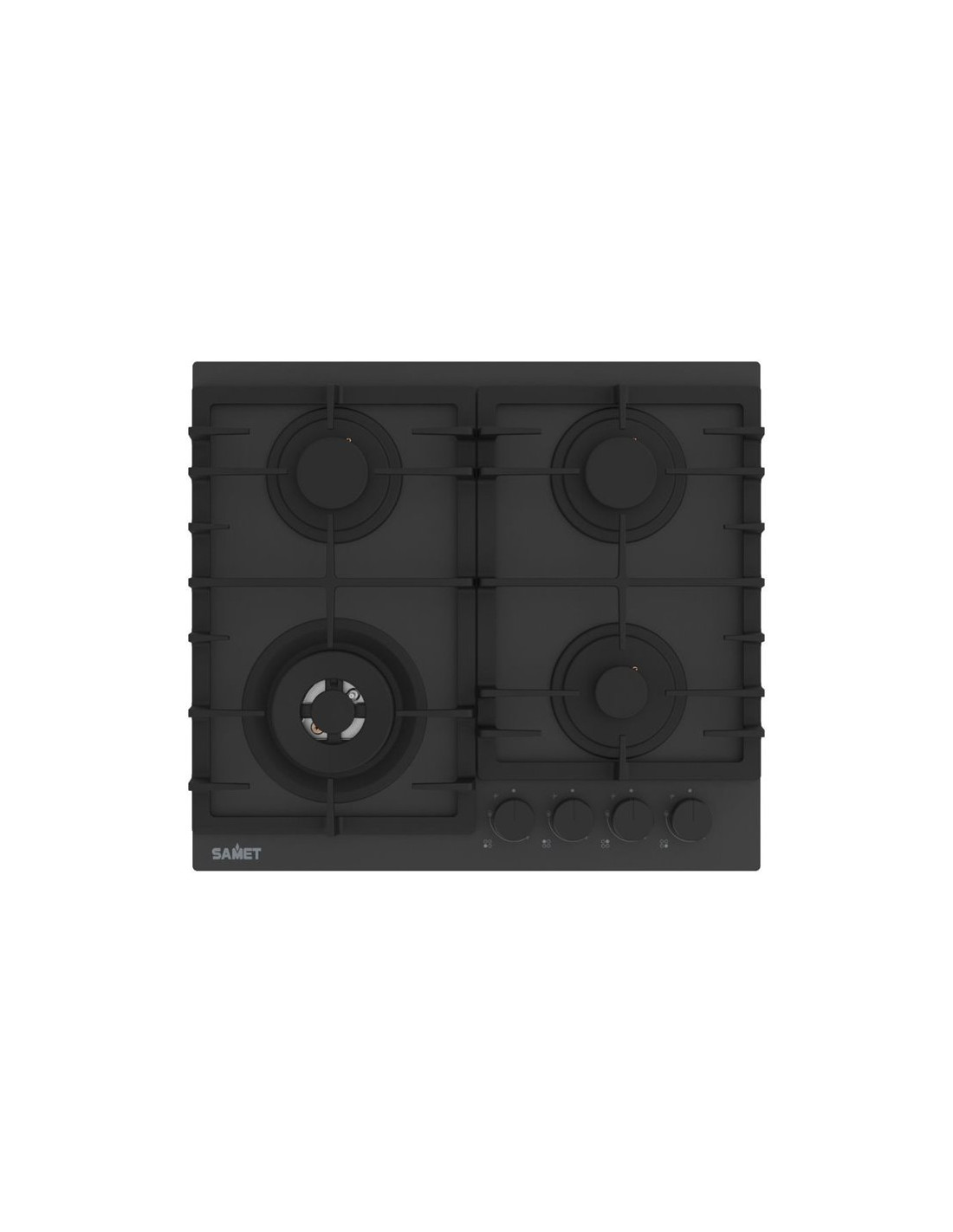 Piano cottura a gas 4 fuochi 60 cm in vetro temperato satinato nero opaco - Zacinto60