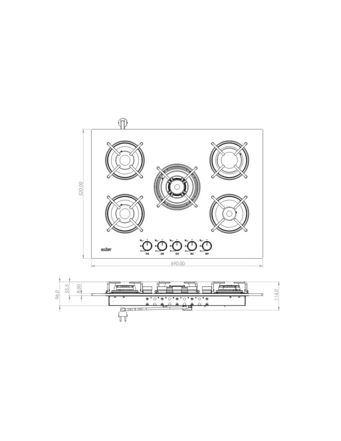 Piano cottura in vetro 5 fuochi bianco 5 fuochi Minerva70