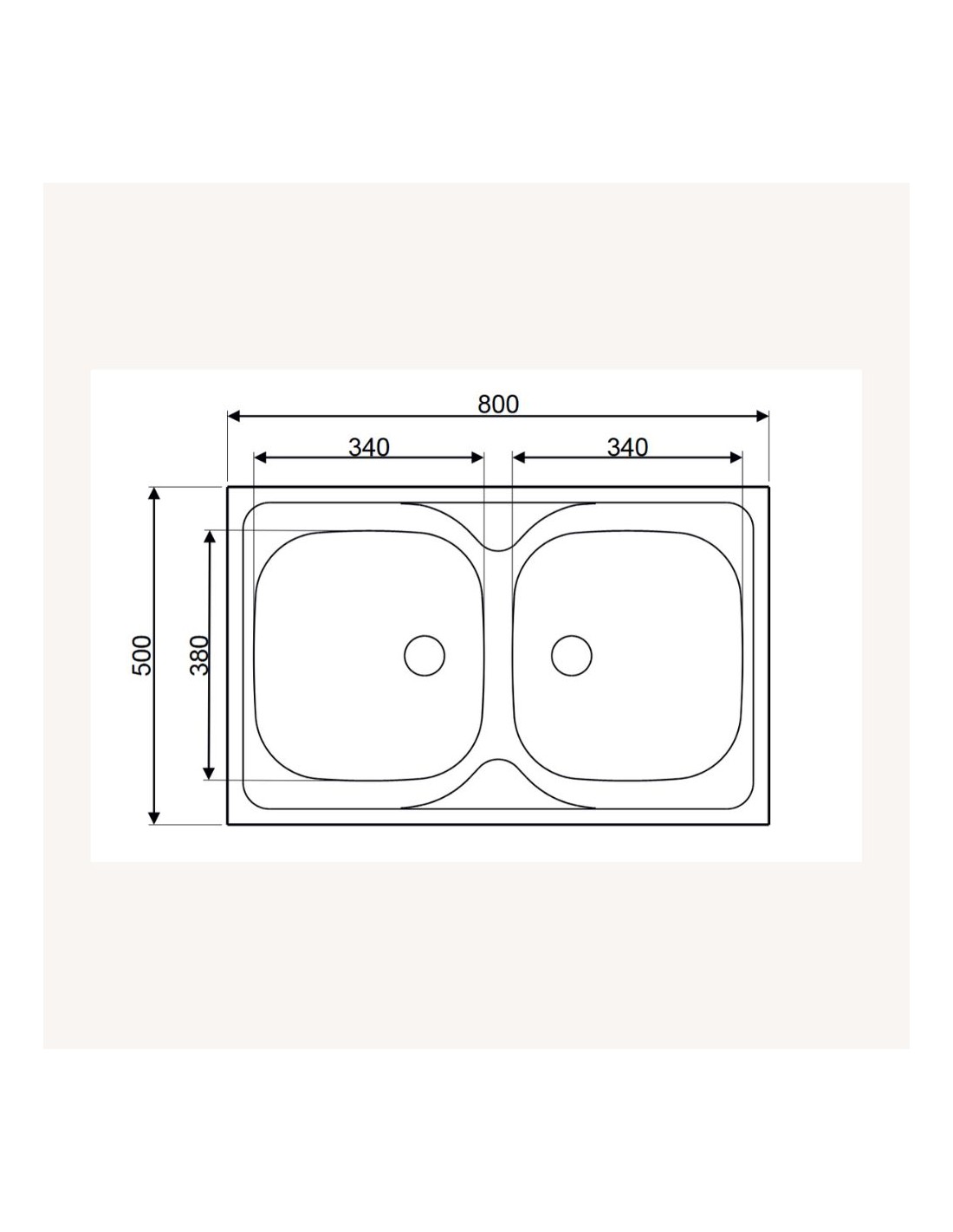 Lavello da appoggio in acciaio inox con 2 vasche, dimensioni 80x50 cm, resistente e funzionale per ogni cucina.